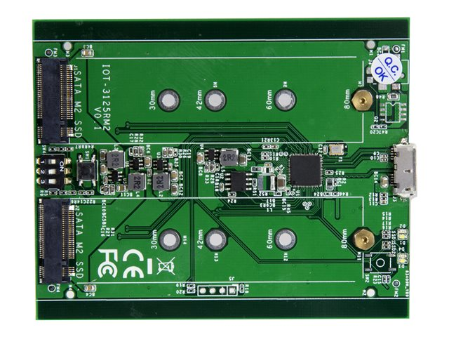 - Stöder alla vanliga M.2 SATA SSD-enheter och låter dig montera flera hårddisklängder: 30 mm (2230), 42 mm (2242), 60 mm (2260) en 80 mm (2280)