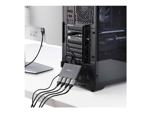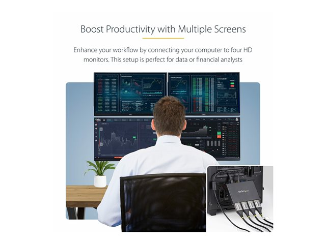 - Maximera din produktivitet genom att ansluta fyra oberoende skärmar till datorn med hjälp av MST-hubben