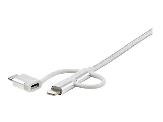 USB till Micro-USB eller USB-C eller Lightning för iPhone/ iPad/iPod/Android - Apple MFi-certifierad - 3 i 1 USB-laddare - Vävd - USB-kabel - USB (hane) till mikro-USB typ B, Lightning, USB-C (hane) - 1 m - silver