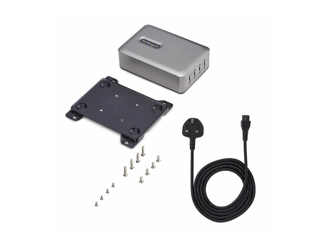 The StarTech.com 4-Port USB-C Charger is a versatile power adapter designed to efficiently charge various devices such as tablets, cellular phones, and notebooks. With a robust power output of 240 watts and the ability to provide multiple voltage levels ranging from 5 V to 28 V, this charger ensures you are equipped for all your charging needs. The charger complies with standards including UL, FCC, RoHS, and DoE Level VI, ensuring a reliable and safe charging experience. Equipped with features such as overheat and overvoltage protection, along with a Kensington security slot, this charger combines safety with security. The inclusion of GaN technology enhances power efficiency while maintaining a compact design. The user-friendly design includes a screw lock system and rubber feet for stability. Whether at home or in the office, the StarTech.com 4-Port USB-C Charger stands as a convenient solution for powering up multiple devices simultaneously.