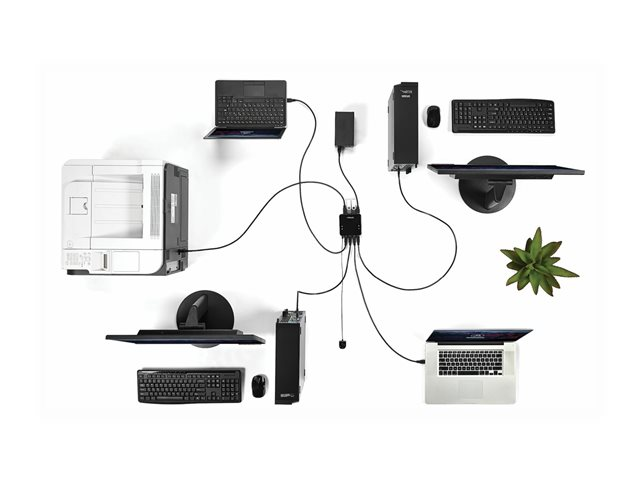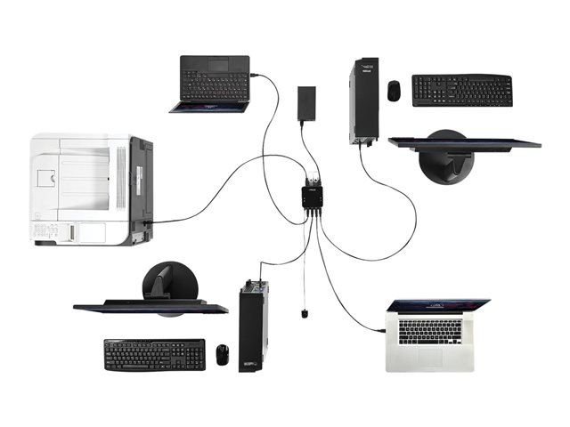 - Spara kostnader genom att dela fyra USB-kringutrustningar mellan fyra datorer